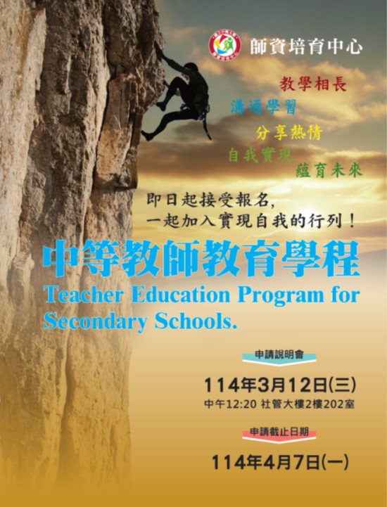 | 3 | 3/12(三) | 申請修習教育學程說明會(12:20於社管大樓2樓202室) |